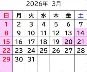 3月を下記の通りお休みいたします。